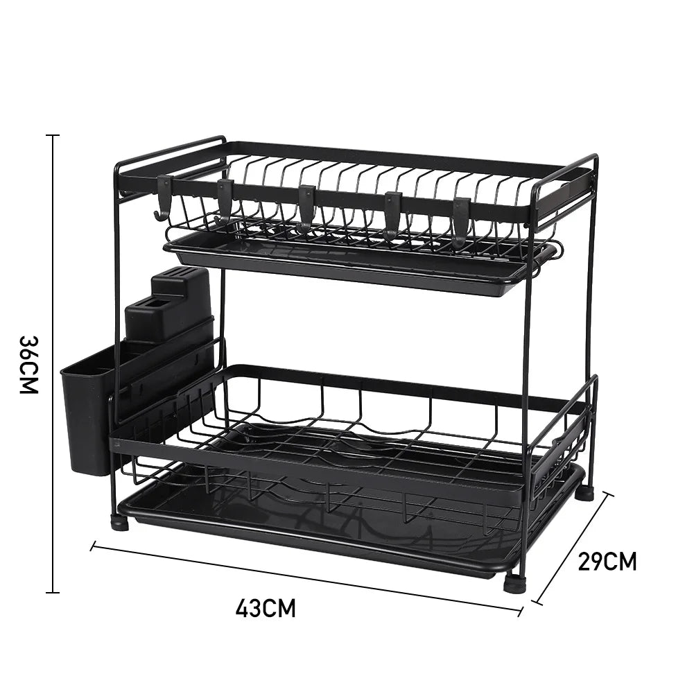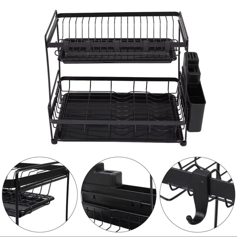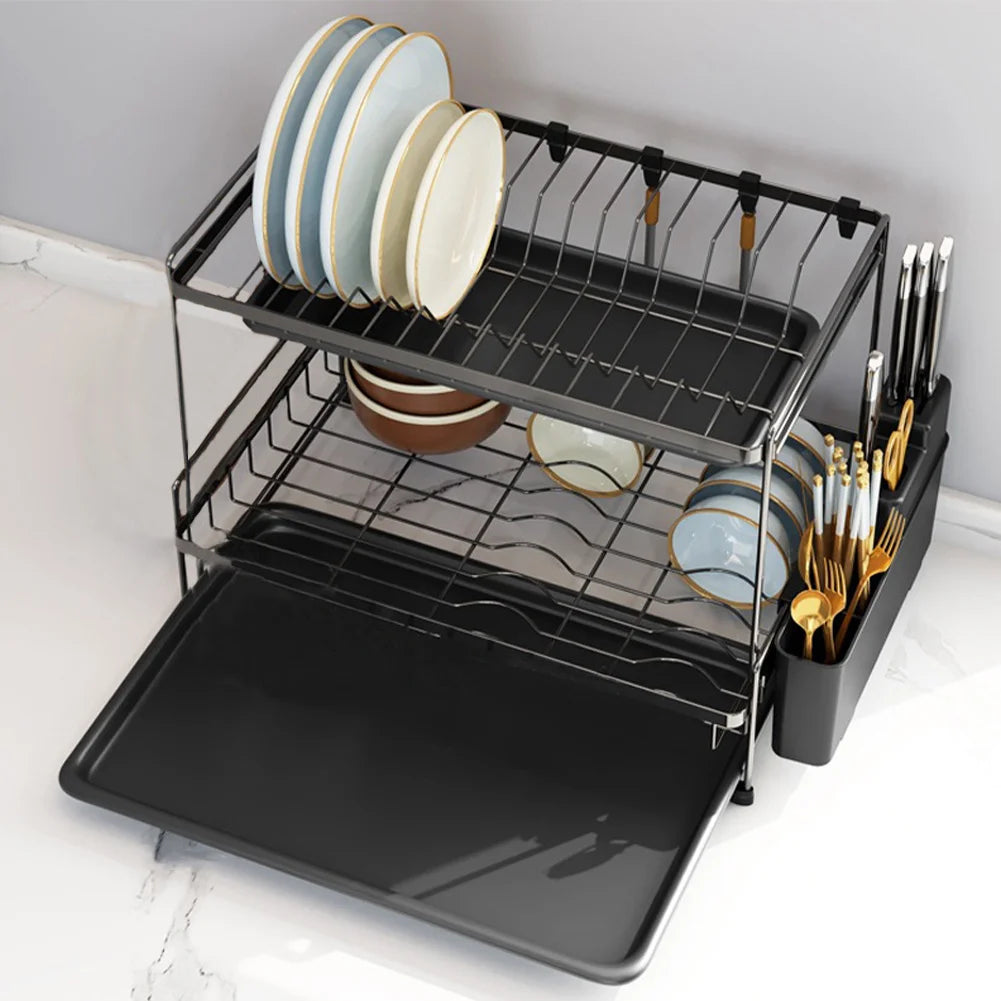 Black 2-Tier Dish Drying Rack with Removable Drainboards